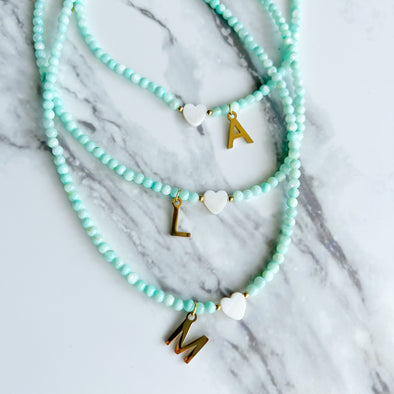 Mint Initial Choker Beads '18k Gold Plated'