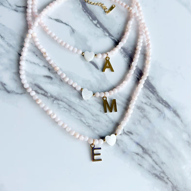 Beige Beads Initial Choker '18k Gold Plated'